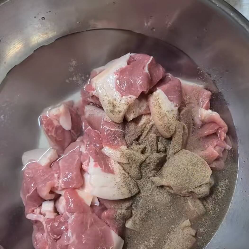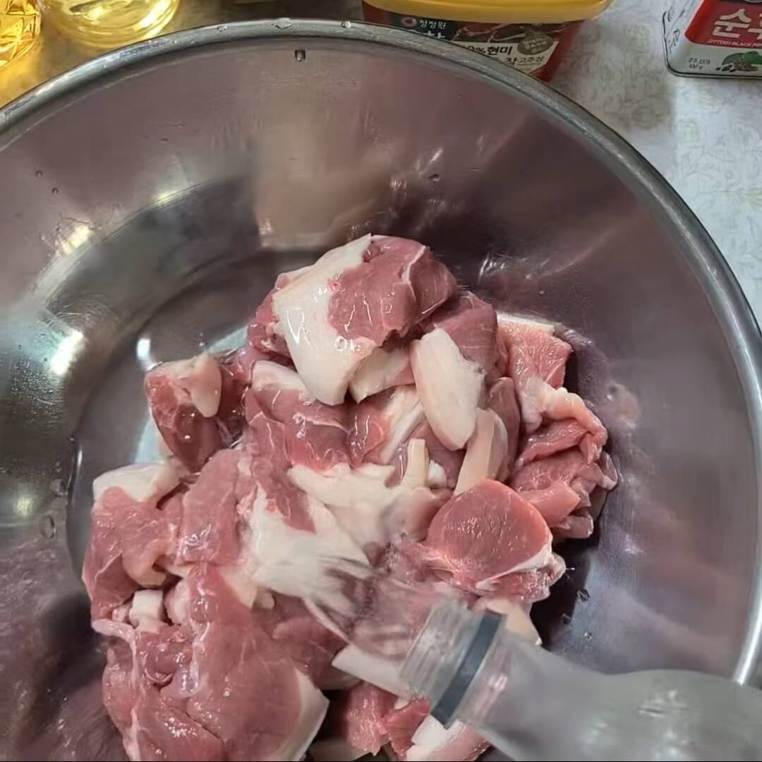 1. 돼지고기 잡재를 없애기 위해서 소주, 후추를 이용해서 20분 ~ 30분 정도 재우면 핏물과 잡내가 많이 제거 된다.