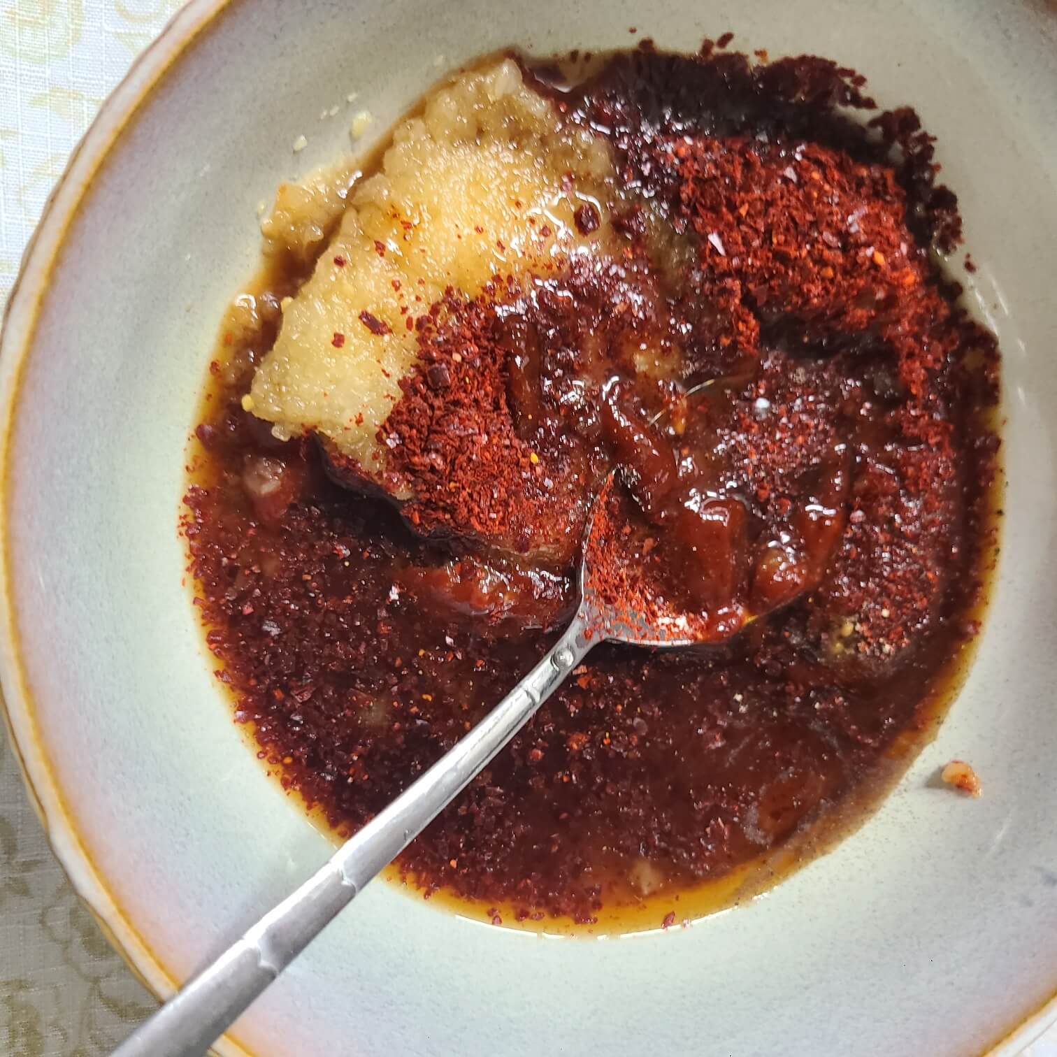 - 숟가락 기준으로 고추장 3, 간장 3, 고춧가루 3, 맛술 2, 들기름 1, 다진마늘 3