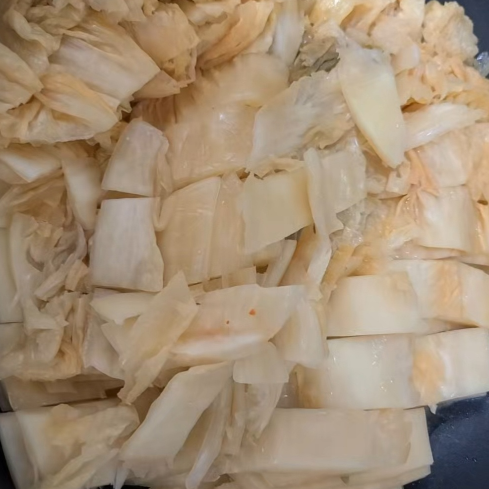 3. 묵은지는 먹기 좋은 크기로 잘라 주고, 팬에 식용류를 넉넉히 부어 주고 묵은지를 볶아주면 된다.
