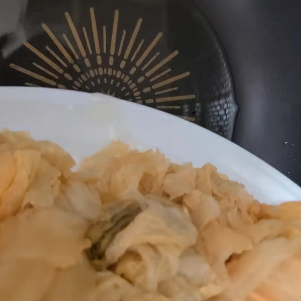 2. 볼에 물을 받아서 묵은지를 여러번 빨아주면 오른쪽처럼 묵지 색이 된다.