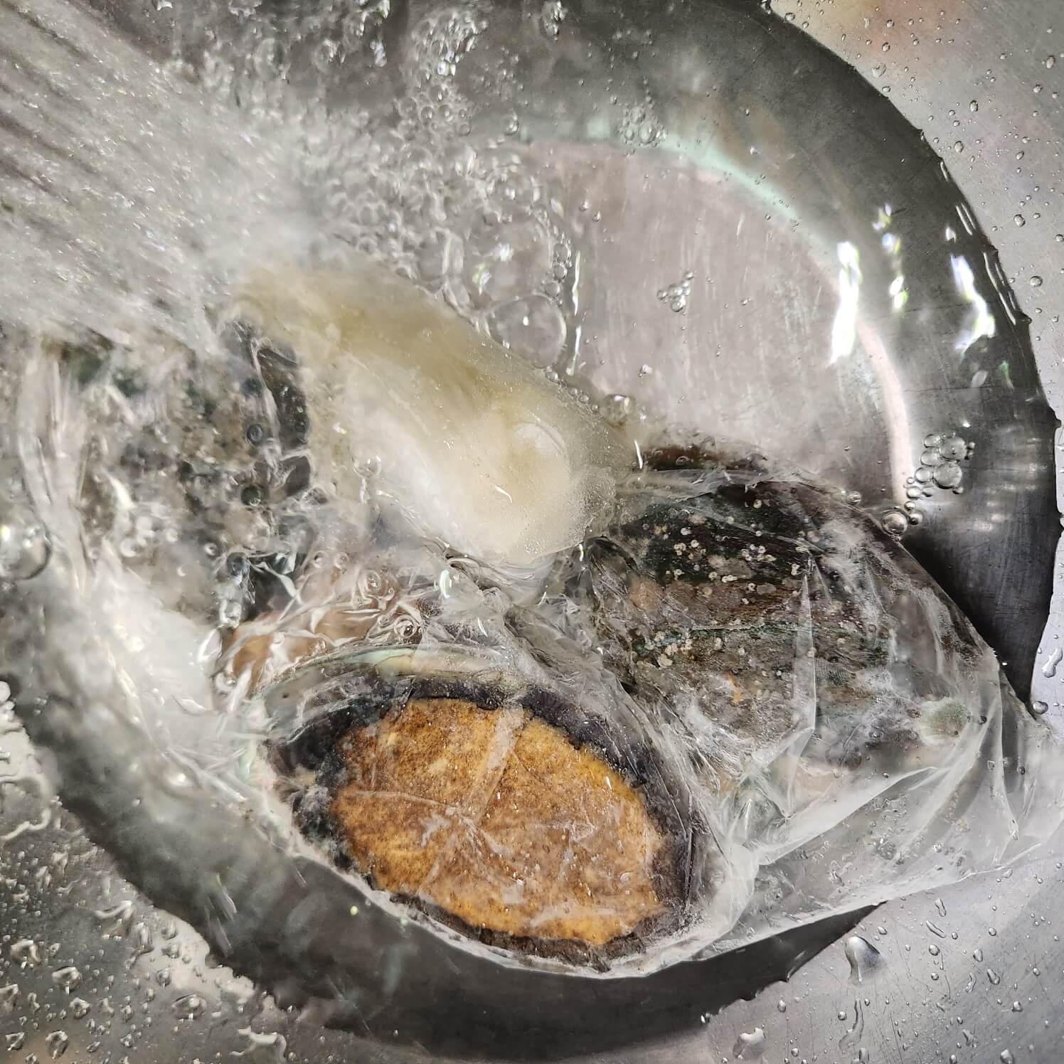 ✅비닐채 2시간, 물을 교환하고 2시간 정도해서 전복은 자연스럽게 녹여줬다.