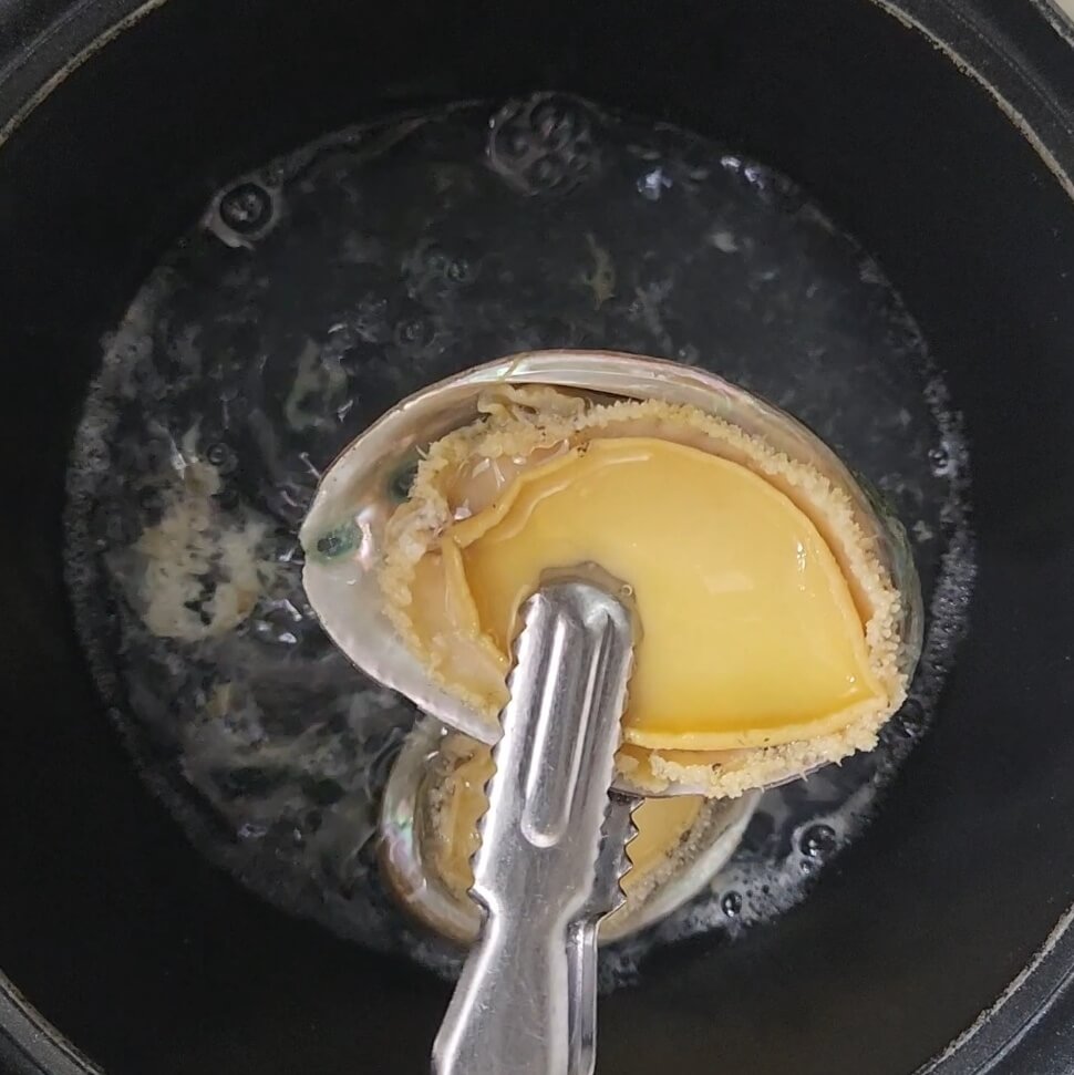 ✅전복은 생으로 회로도 먹기 때문에 10초 이하로 데쳐주는 것이 중요하다.