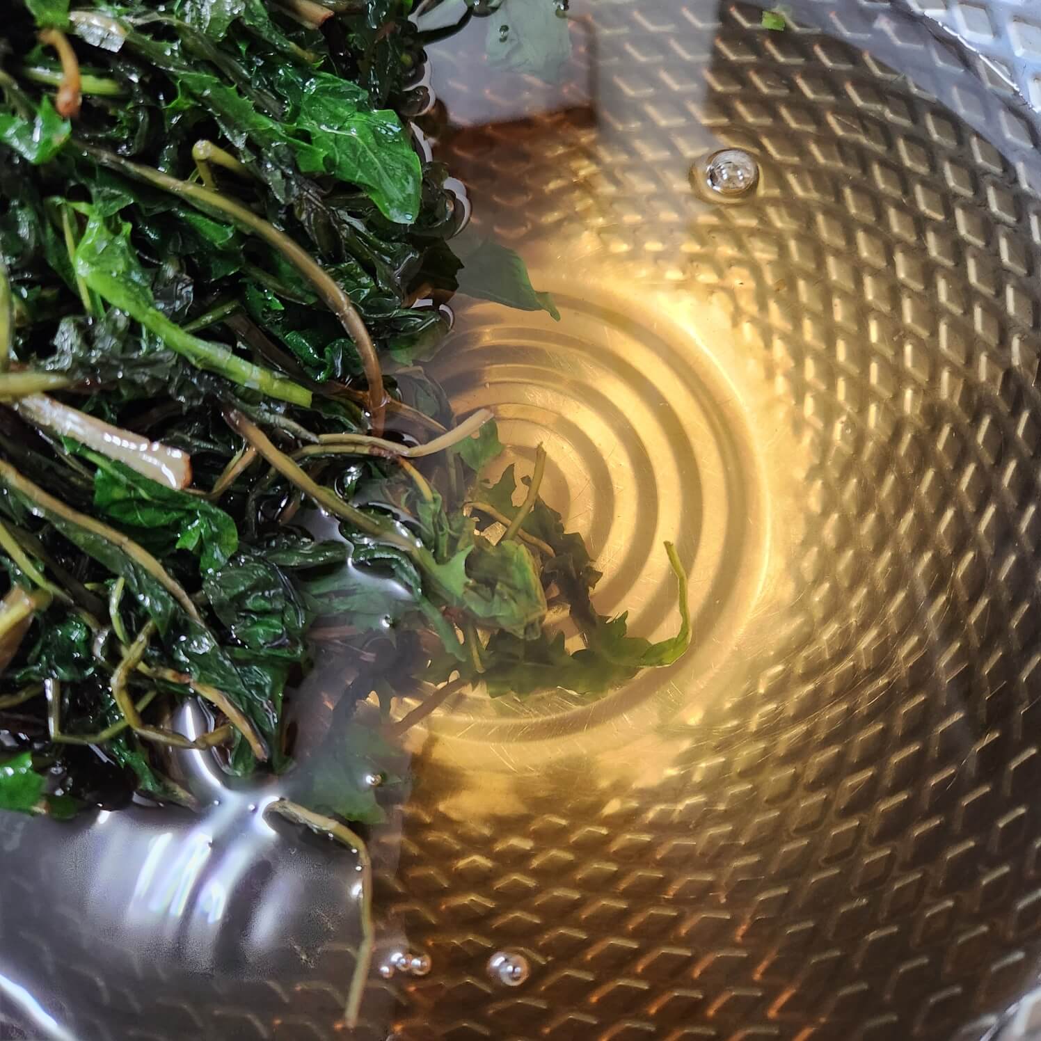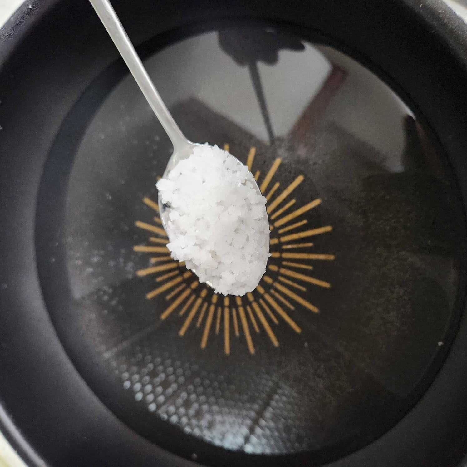 ✅숟가락 기준으로 천일염 1을 넣고 민들레를 30초 ~ 1분정도 데쳐 주면 된다.