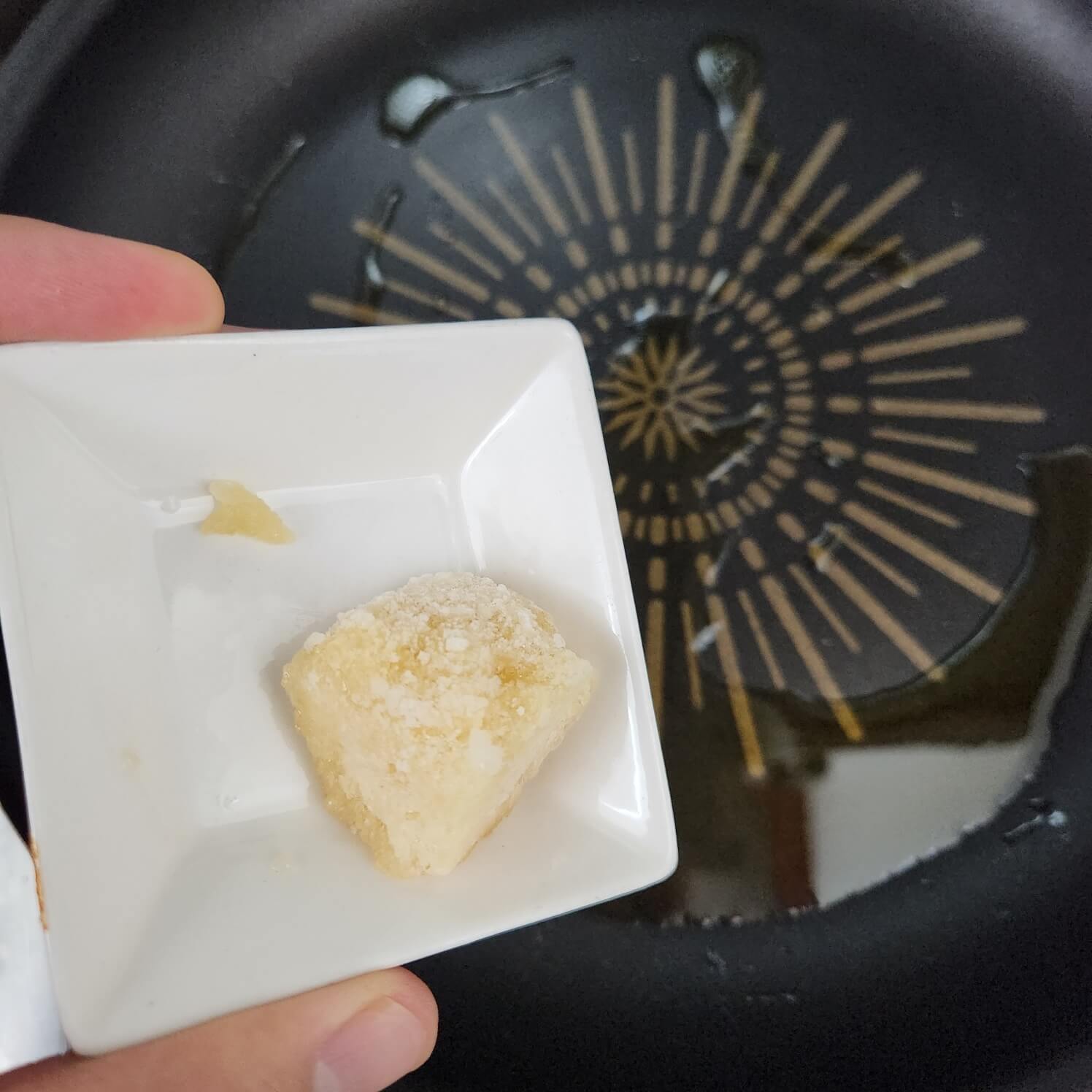 4. 이제 도라지를 약불로 볶았던 팬에 도라지 구이 양념을 넣고 얇게 펴 발라주면 된다.