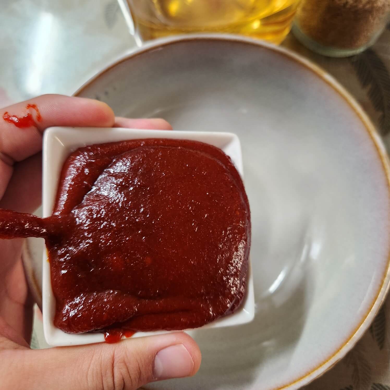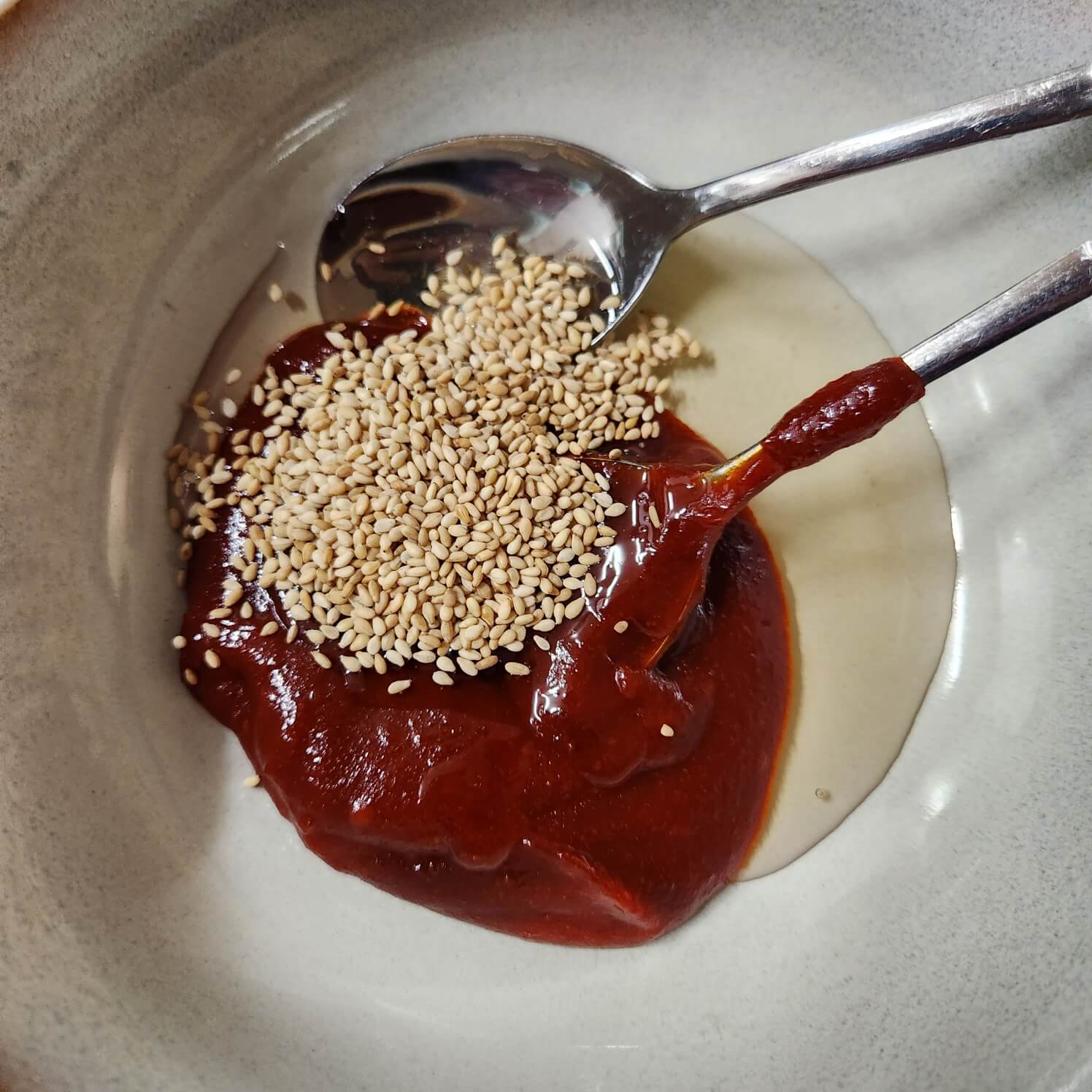 - 숟가락 기준으로 고추장 2, 꿀 3, 들기름 2, 통깨 1, 다진마늘 0.5