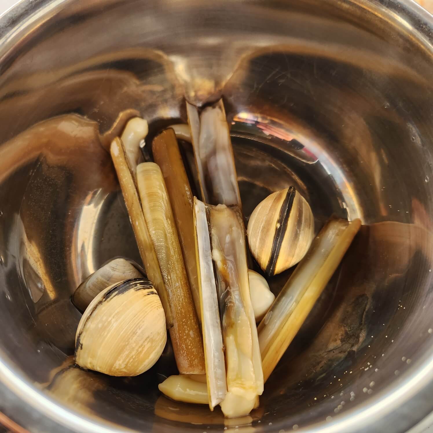 1. 맛조개 요리를 하기 위해서 바닷가에 잡은 조개류는 최소 12시간 ~ 24시간 해감을 해줘야지 으직거리는게 없다.