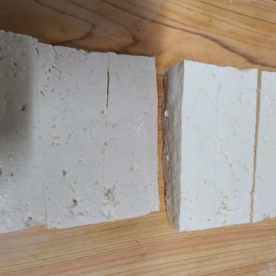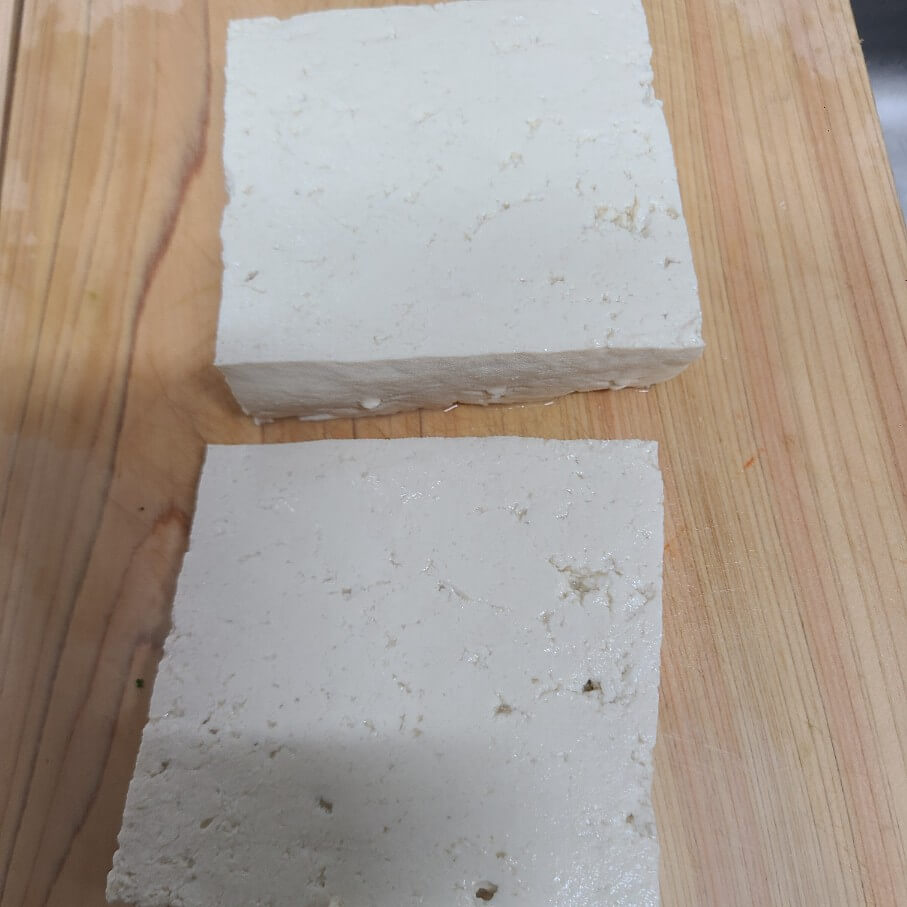 1. 두부는 끓는 물에 10분정도 삶아서 반으로 가르고 3등분으로 잘라준 다음에 깍뚝썰기로 썰어주면 된다.