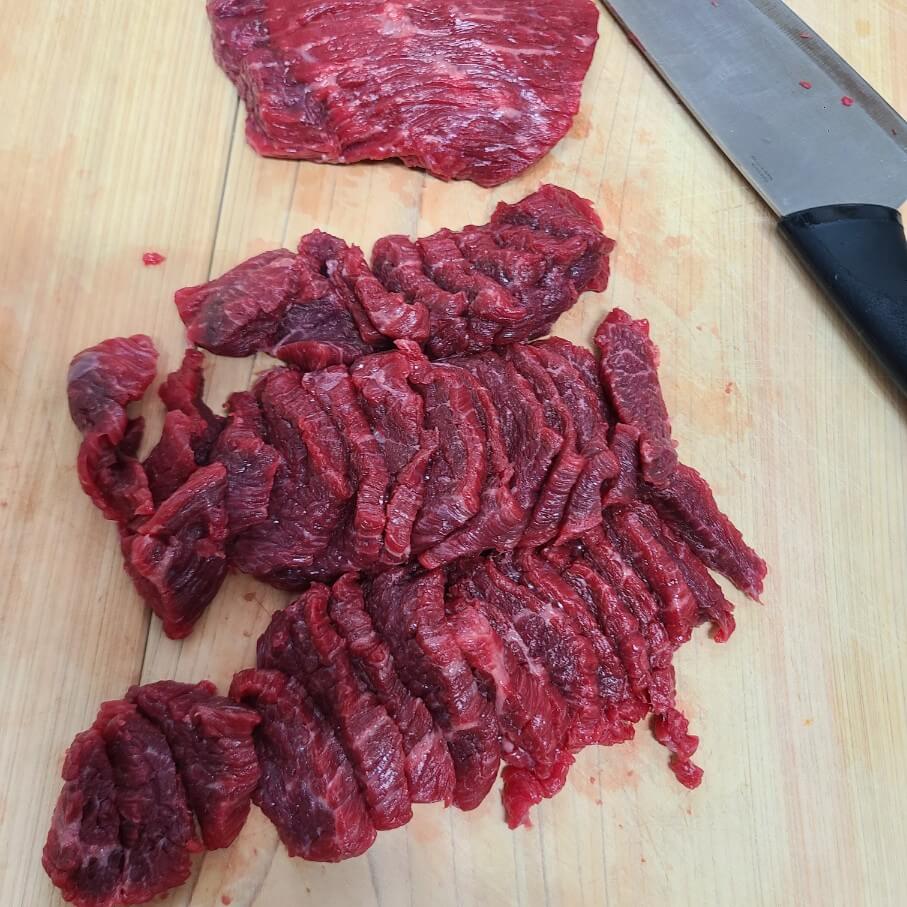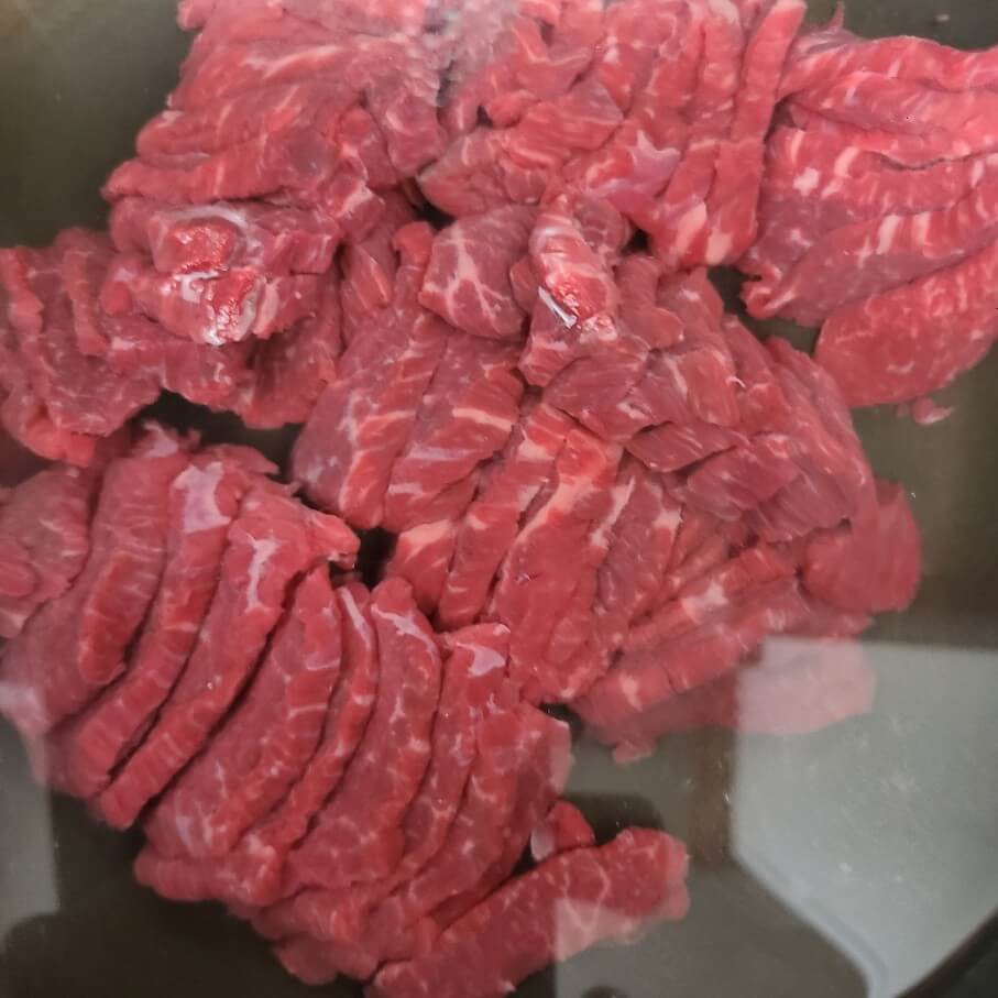 1. 소고기는 고기결 반대방향으로 먹기 좋게 썰어준 물에 담궈서 핏물을 빼줘야지 고기 잡내가 나지 않는다.