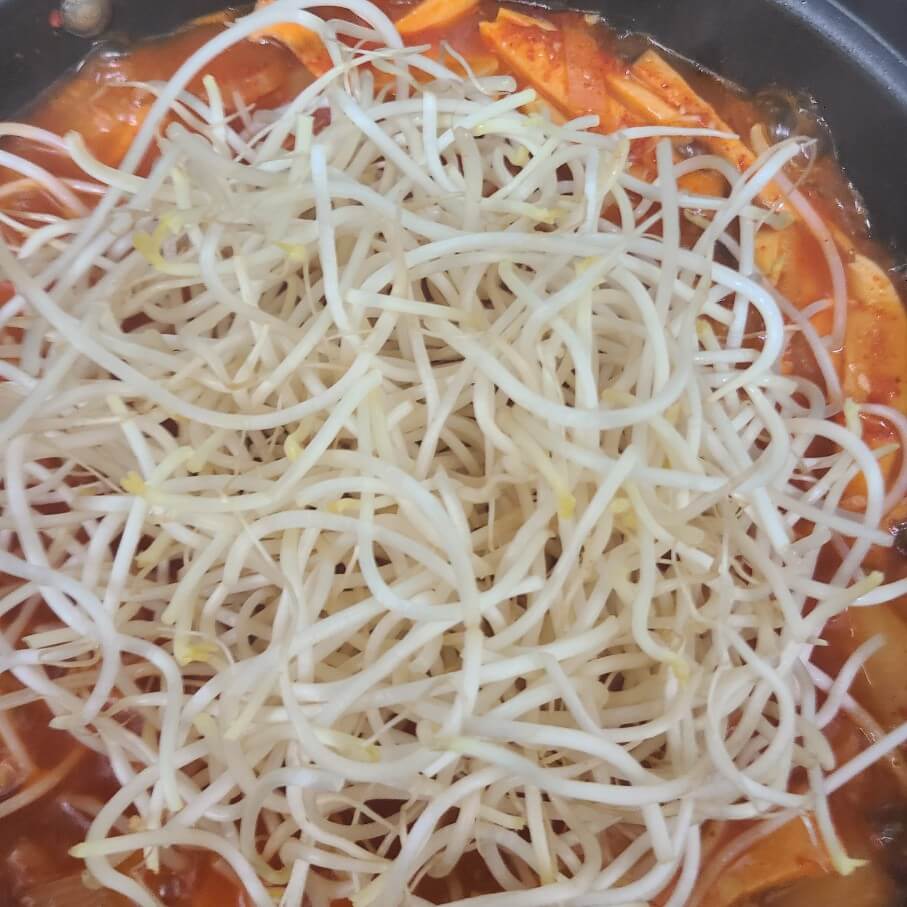 📌센불 8분 후면 무국기 끓으면 콩나물을 넣고 중간불로 5분간 더 끓여주면 된다.