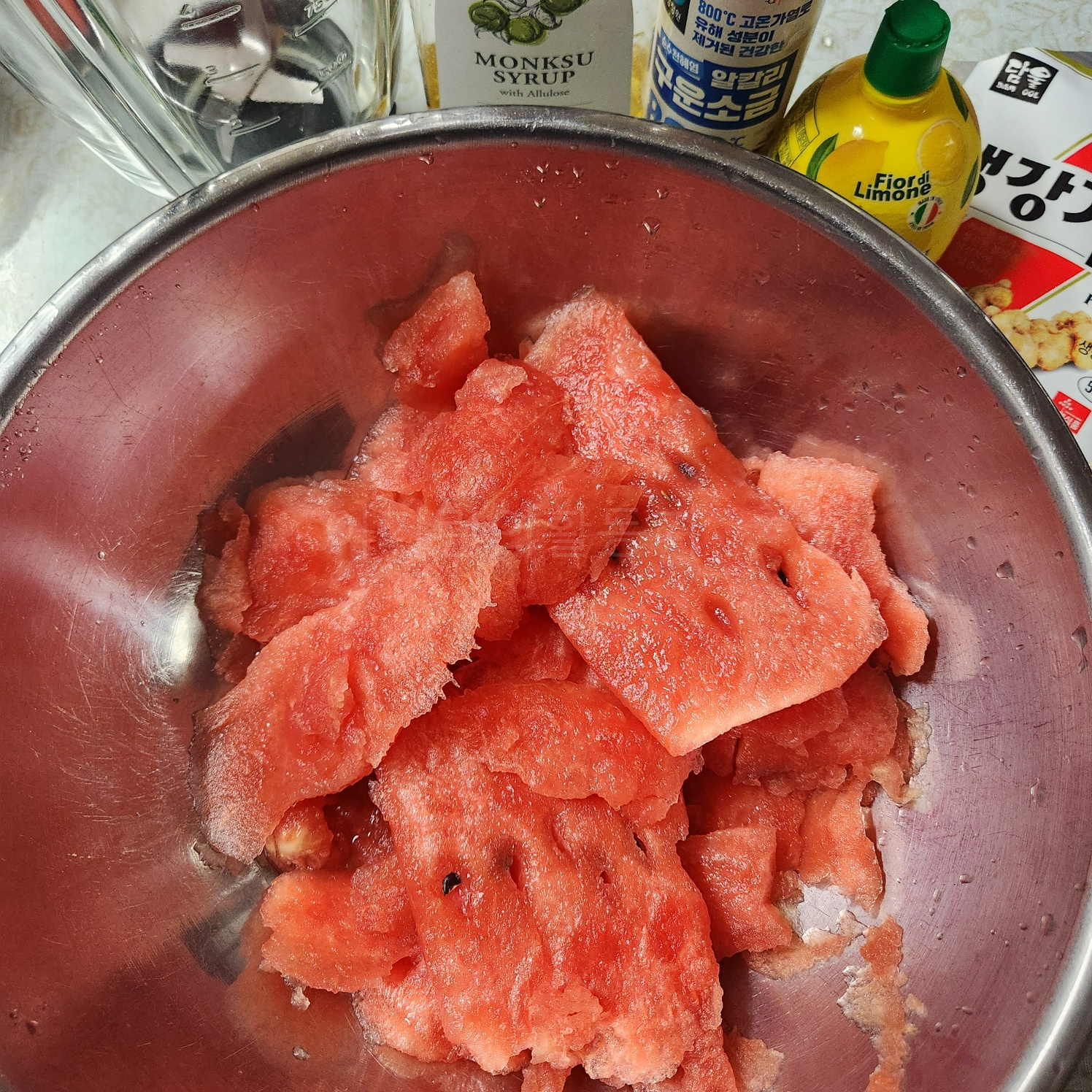 수박주스 만들기 땡모반 만드는 법 수박쥬스 황금레시피 이렇게 먹으면 너무 맛이 좋으니 참고하면 좋다. 땡모반을 만들지 않으실 분들은 생강가루만 생략하면 된다.
