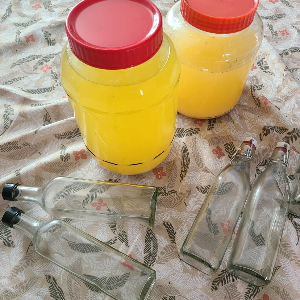 8. 1년 반정도 되어서 작은 병으로 옮겨 줬다. 처음에는 맛있는 레몬색이지만 조금 더 숙성되면 갈색으로 변하는데 이때가 가장 맛있는 감식초디다.