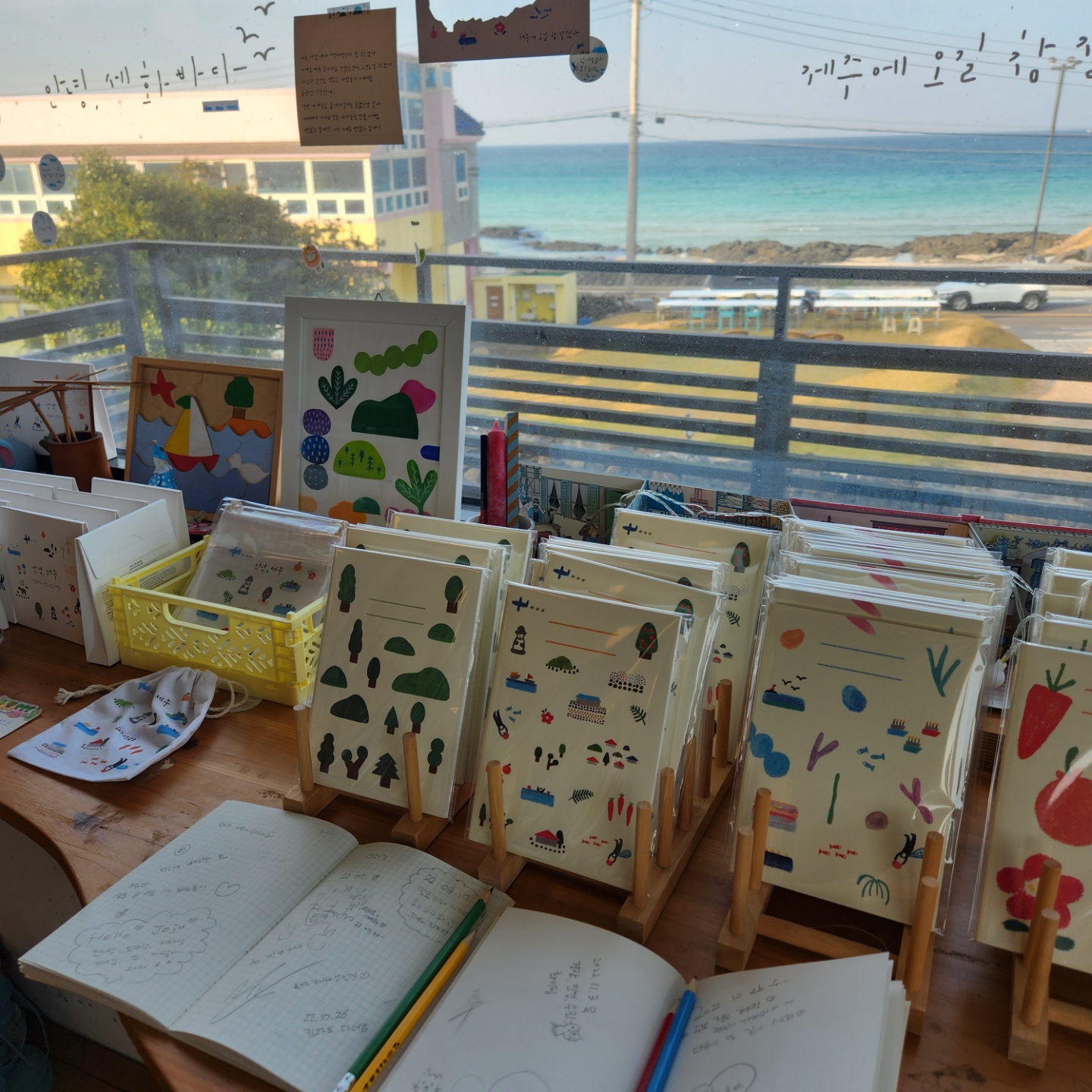 아기자기한 물건을 좋아하시는 분들은 세화문방구를 가보시는 것도 좋을 것 같습니다. 들어가시면 아주 조용하지만 "아기자기한 물건과 인테리어들이 매우 귀여운 것 같습니다." 세화 문방구에서 엽서, 사진, 배지 등을 구경하시고 앞에 보이는 에메랄드 세화 해변에서 사진 한 장 찍는 것도 좋을 것 같습니다. 세화 해변의 에메랄드 같은 바다를 사진으로 온전히 담지는 못했지만 정말 아름다운 것 같습니다. (세화씨 문방구 위치: 제주특별자치도 제주시 구좌읍 해맞이해안로 1446입니다.)