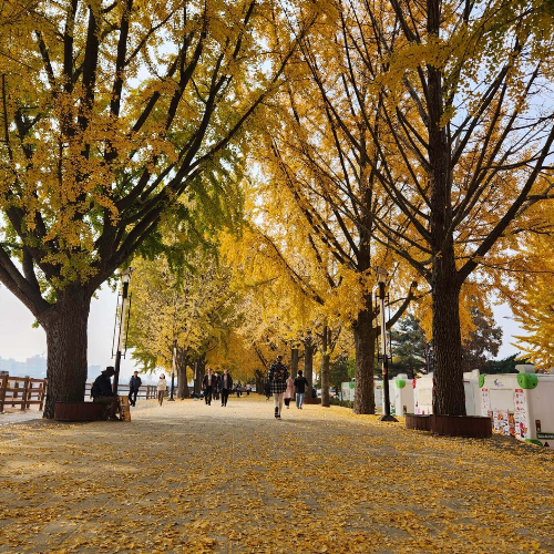 노랗게 물든 은행나무 길입니다. 은행나무 입구부터 시작해서 다양한 사진 찍는 곳들이 많이 있습니다. 걷다보면 가을의 맛에 빠져서 좋을 것 같습니다. 어르신들은 김밥을 만들고, 돗자리를 펴서 다양하게 즐기는 모습들이 너무 귀여우시면서 좋았습니다. 곳곳에 벤치가 있는데 "벤치에 앉아서 커피를 마시는 분" 들도 있어서 너무 좋았던 것 같습니다. 또 곡교천 은행나무 숲길 근처에는 카페 3곳과 국숫집 한 곳이 있는데 은행나무를 바라보면서 차 한잔의 여유도 좋을 것 같습니다. 또 국수를 야외에서 먹으면서 은행나무길을 한 껏 볼 수 있어서 맛과 멋을 두 가지를 즐 길 수 있는 장점 드리 있는 것 같습니다.