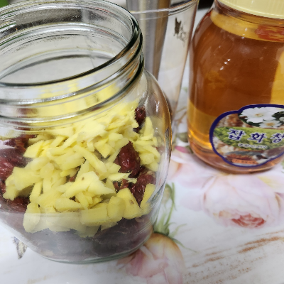 대추 1, 올리고당 1, 꿀 1 맛있으면 대추차, 대추 잼까지 완성이 되지만 저는 생강을 추가합니다. 생강은 예로부터 만병통치약이라고 불릴 만큼 영양이 풍부한 재료 중에 하나인데요. 차가운 기운을 밖으로 내보내면서 체질적으로 소화기관을 개선시켜주는 도움을 주기도 합니다. (예: 대추 100g, 올리고당 50g, 꿀 50g)