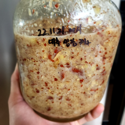 6. 곱게 간 재료는 이제 일주일 정도만 숙성하시면 면역에 좋은 대추 생강차를 집에서 손쉽게 드실 수 있습니다. 꿀과 대추, 생강이 몸의 면역성을 올려줄 생각을 하니 벌써 몸이 뜨거워지는 것 같습니다.