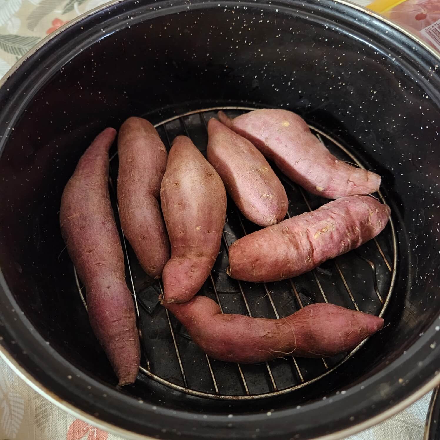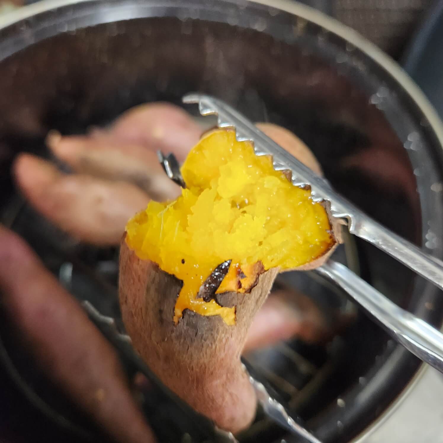 직화 냄비로 군고구마 굽기