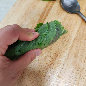 잘 씻은 깻잎은 사선으로 잘 접어서 꼭지를 손쉽게 가위로 잘라주시면 되고 자르실 때는 깻잎을 김밥처럼 말아서 채 썰어주시면 됩니다.
