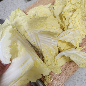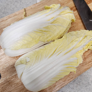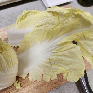 알배추는 하나씩 뜯어서 하는 것보다 반으로 갈라서 먹기 좋게 잘라주시는 게 더 간편하게 손질이 가능한 거 같아요.