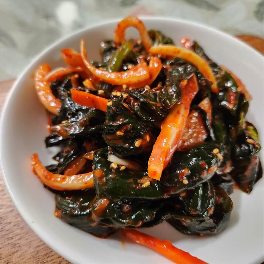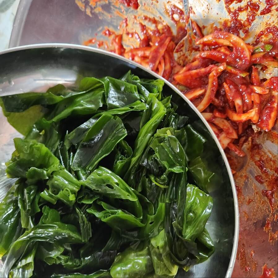 6. 양념을 다한 상태에서 곰피가 양념에 잘 베이도록 여러 번 양념을 무쳐주면 된다.