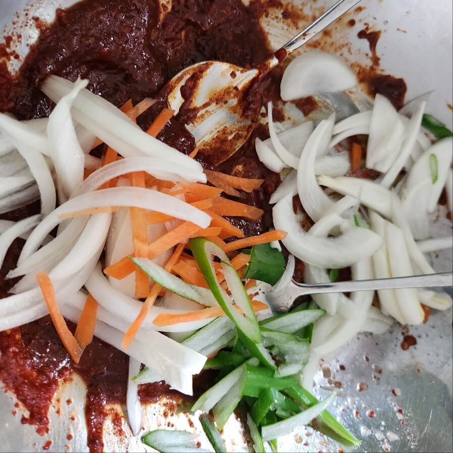 ✅ 야채를 먼저 양념에 버무려서 숨을 죽게 만들어 준다.