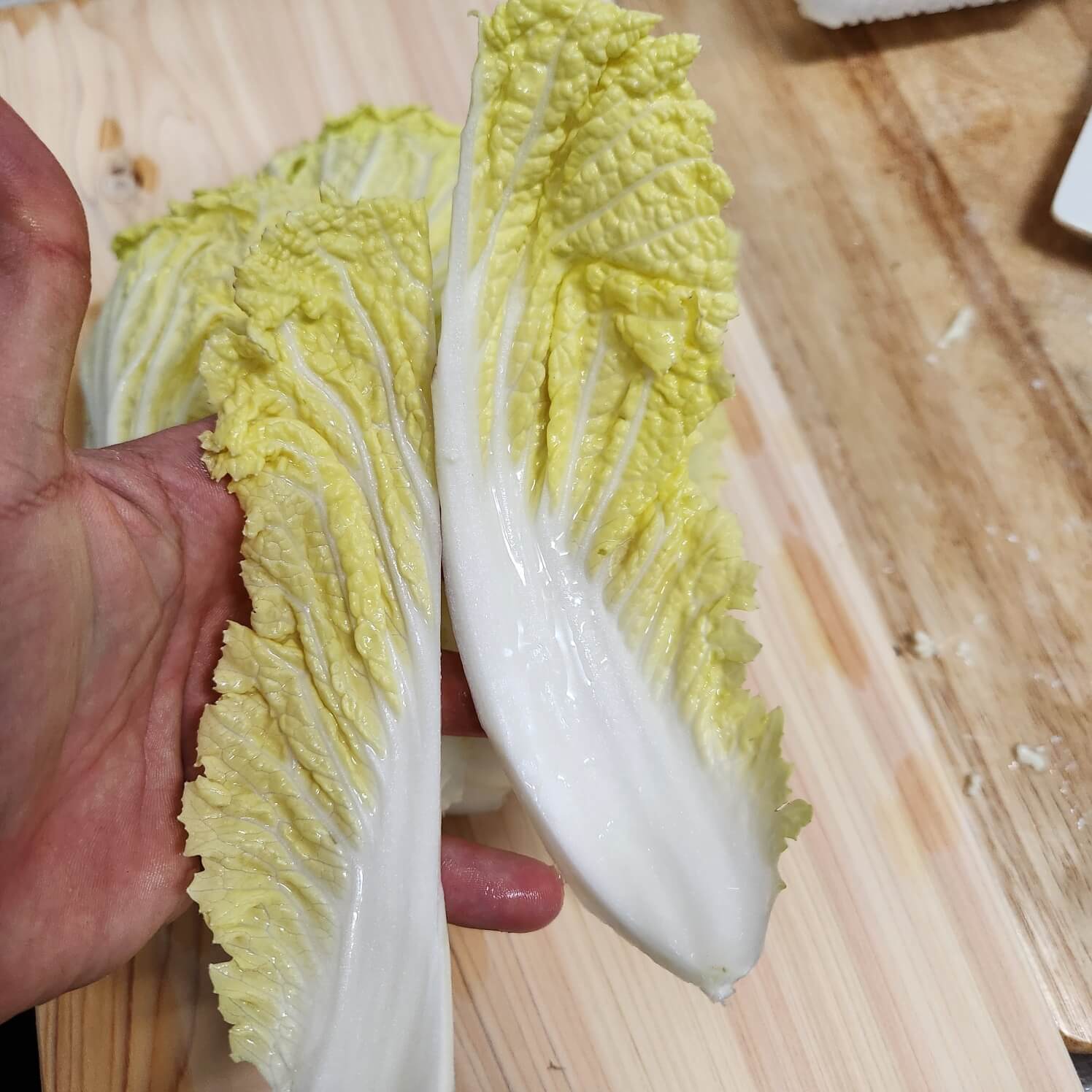 👉버섯, 두부는 큼직하게 잘라주시고, 배추는 길게 잘라주시면 좋아요.