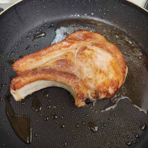 3. 이제는 후라이팬 요리입니다. 프라이팬은 적당량의 올리브유를 둘러주시는 게 좋습니다. 돼지고기가 닳을 부위의 면적만큼만 둘러주시면 됩니다.