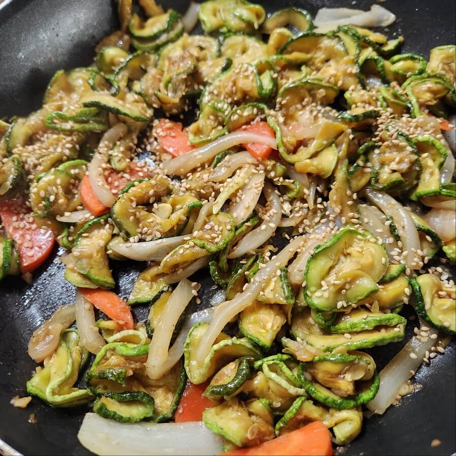 👉마무리는 통깨로 하면 이쁘고 쫄깃한 애호박 볶음을 맛 볼 수 있다.