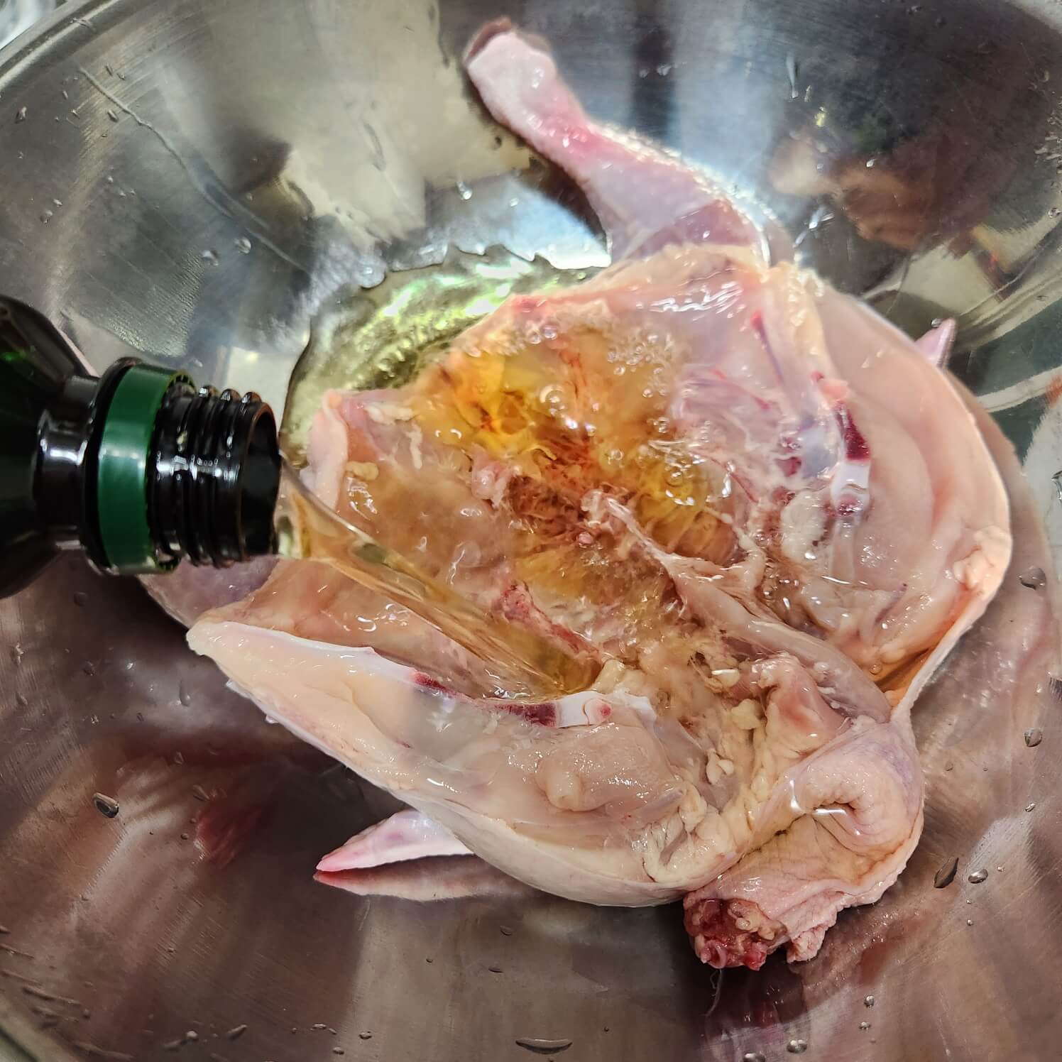 👉그리고 집에 먹다 남은 맥주가 있으면 30분 ~ 1시간 정도 담가서 핏기, 연육작요를 해주시면 닭의 잡내가 나지 않아요.