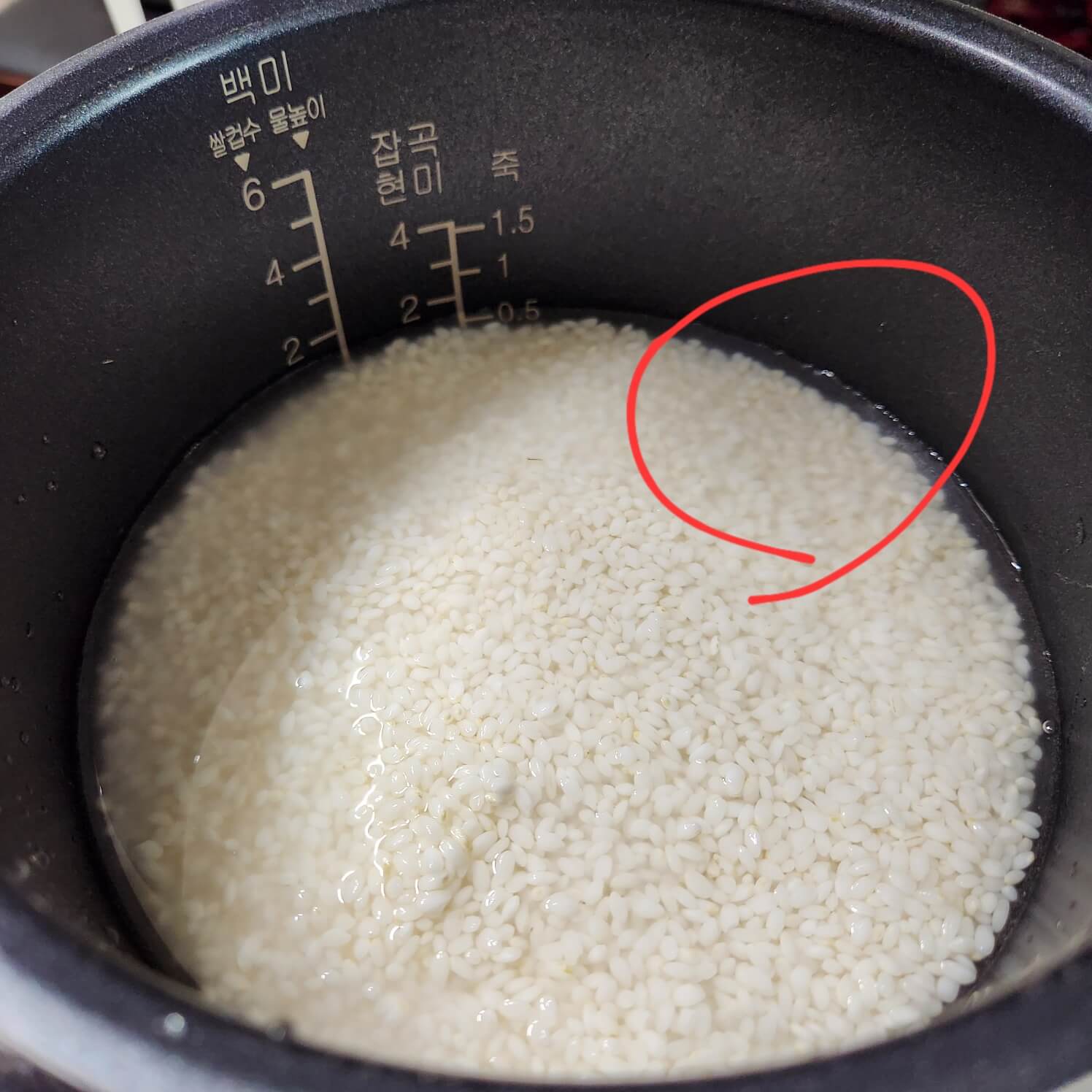 👉전기밥솥에 쌀을 넣은다.