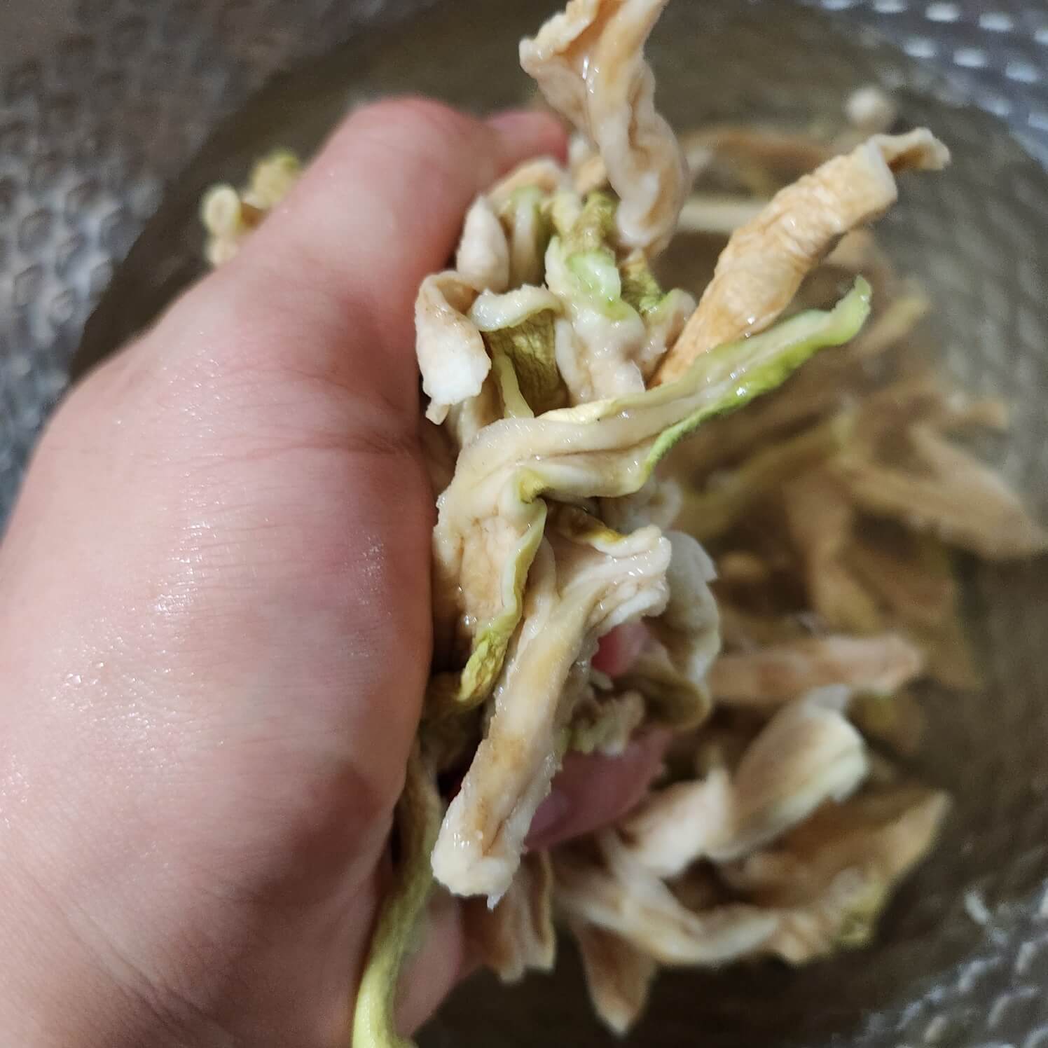 4. 무말랭이는 만졌을 때 부들부들한 느낌이 들면 된다.