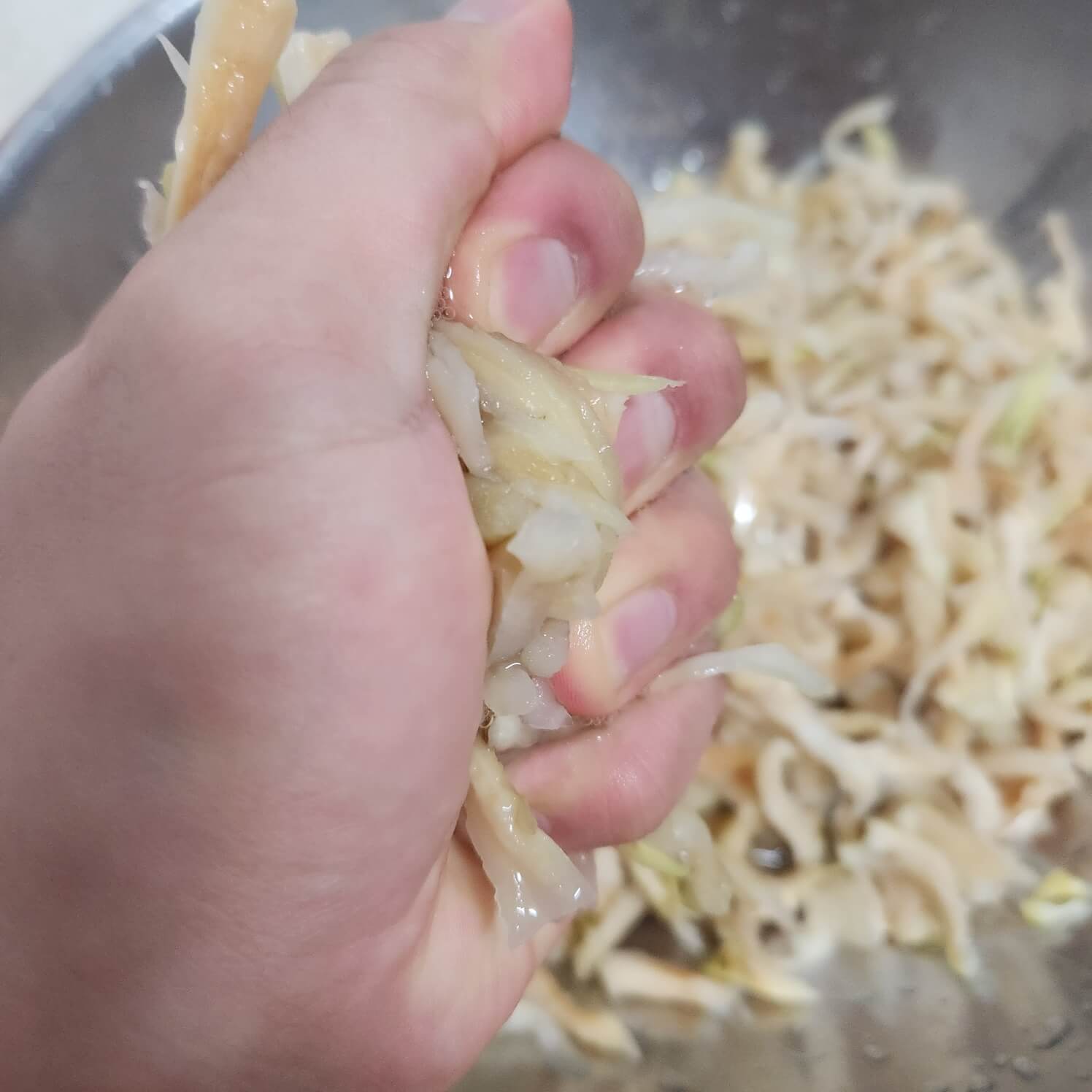 6. 무말랭이 자체에 물기가 많이 있어서 물기를 반드시 꼭 짜줘야 된다.