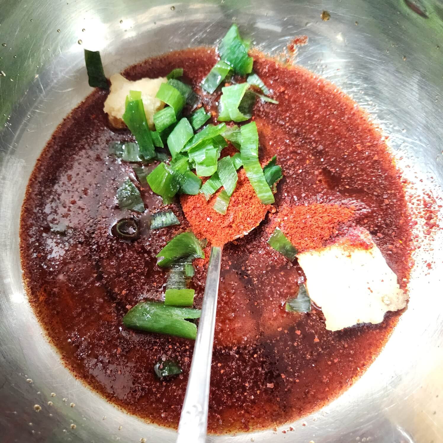 👉무가 물에 불려나는 동안 양념장을 만들어 주는 게 좋다.