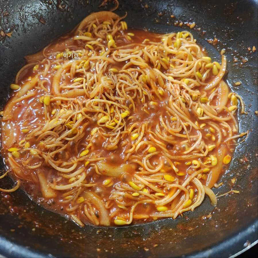 4. 중간불로 4분이 지나고나서 센불로 1분정도 더 끓여주면 콩나물 볶음 (지짐)이가 완성이 된다.