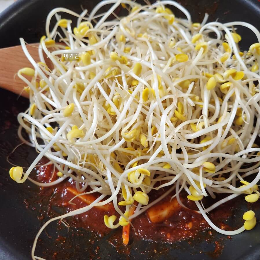 2. 물기가 빠진 콩나물을 넣고 양념장을 묻혀주면 된다.