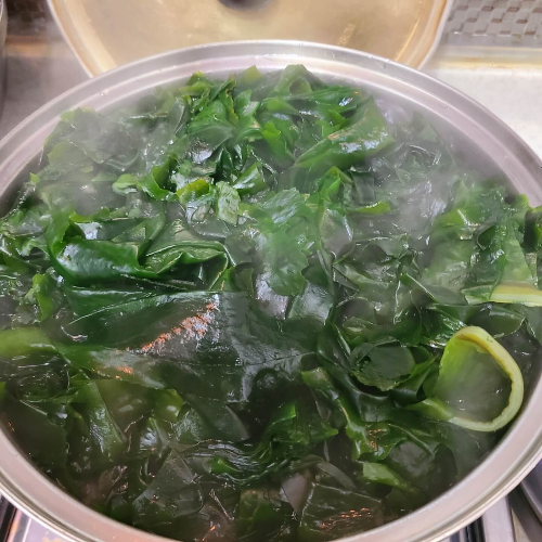 제 지인의 경우 미역국을 한번 끓고 나서 미역국을 완성하시는 분이 계시는데 그 집 미역국은 뻣뻣하거나 아삭 거리는 식감이 있어요. 혹시 이런 식감을 가지시는 분들이 계시면 한번 "부들부들한 미역국 레시피"를 한번 따라 해 보셔도 좋을 거 같아요.