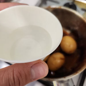 • 다진 마늘 7g, 파 한줌 또는 2숟가락 20g, 물 종이컵 3번 420ml, 진간장 종이컵 반컵, 10 숟가락, 설탕 4 숟가락
