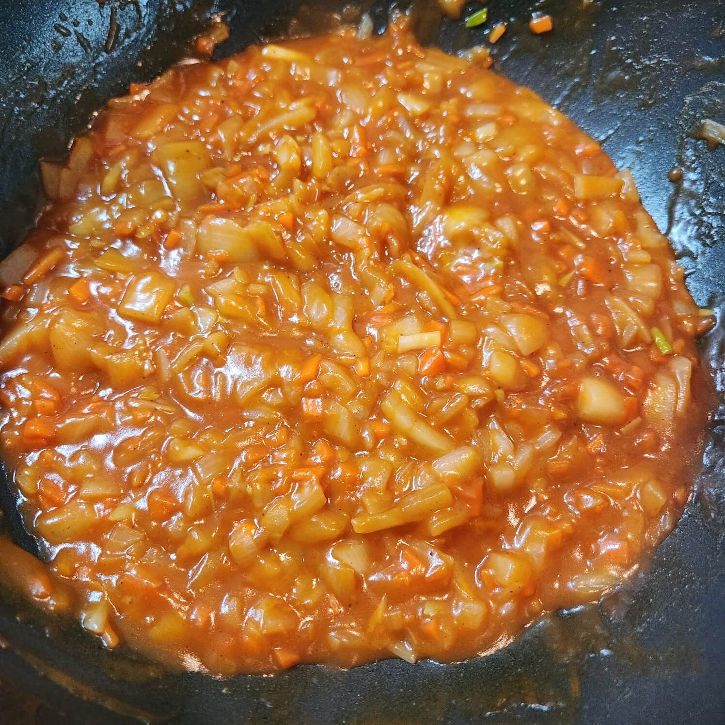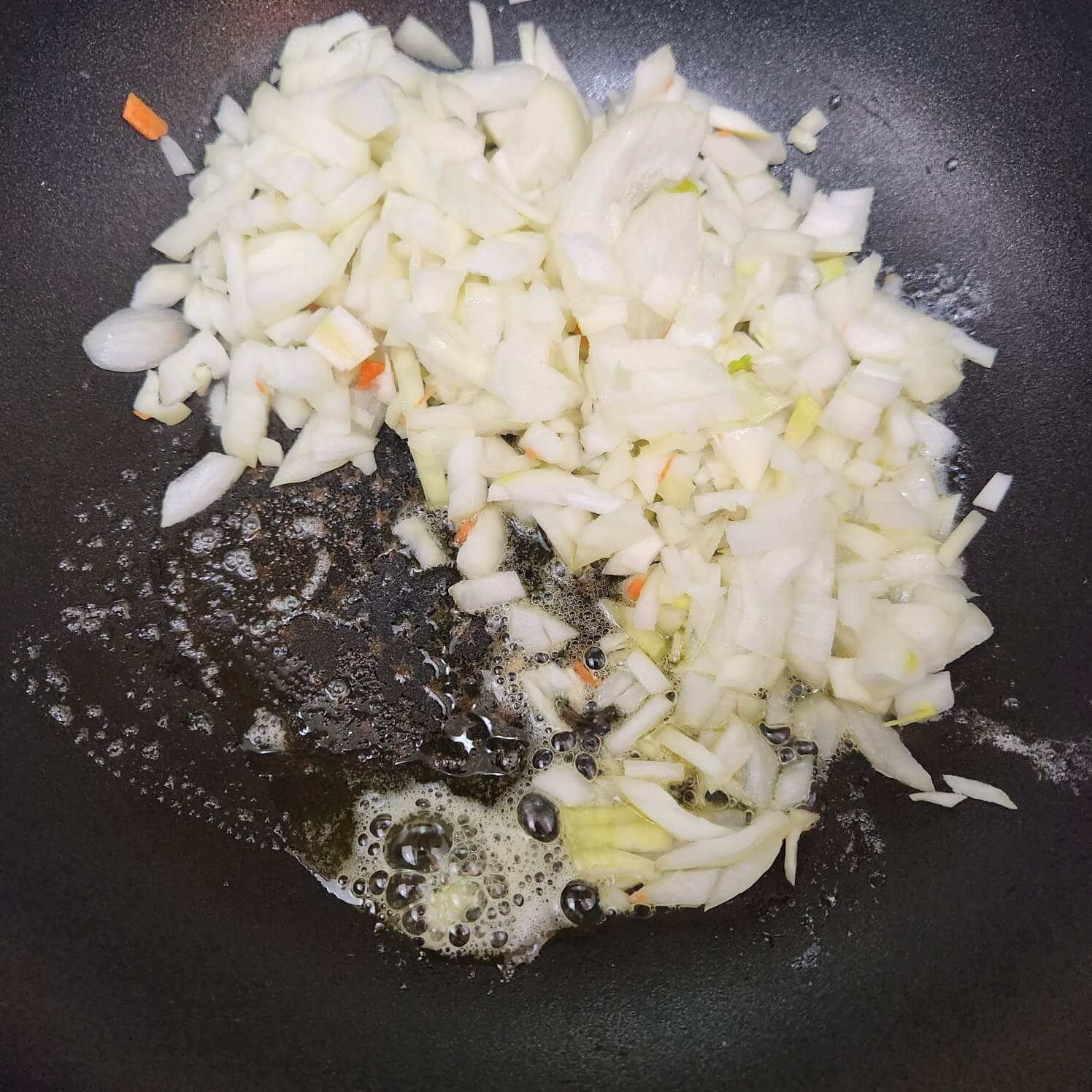 👉👉양파가 갈색으로 바뀌면 당근을 넣어서 당근이 숨이 죽을 때까지 마저 볶아주세요.
