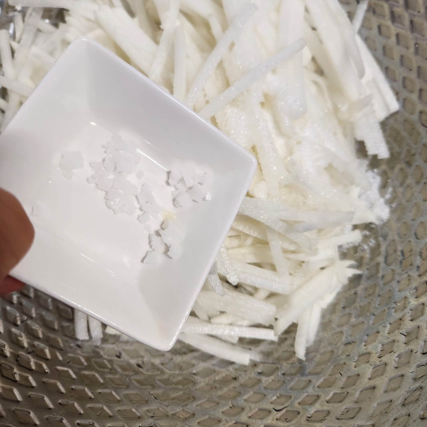 2. 얇게 채 썬 무생채를 절여주시면 돼요.