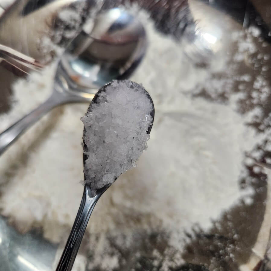 ✅숟가락 기준으로 튀김가룸 5, 올리브유 2, 물 7, 티스푼으로 말돈 소금 2를 넣고 잘 저어서 반죽을 만들어 주면 된다.