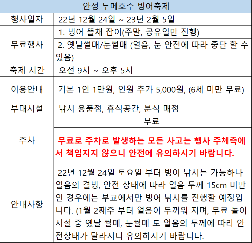 2022년 ~ 2023년 겨울축제 파주 송어축제, 안성 두메 호수 빙어축제, 산천어 축제까지 어디까지 가보셨나요?