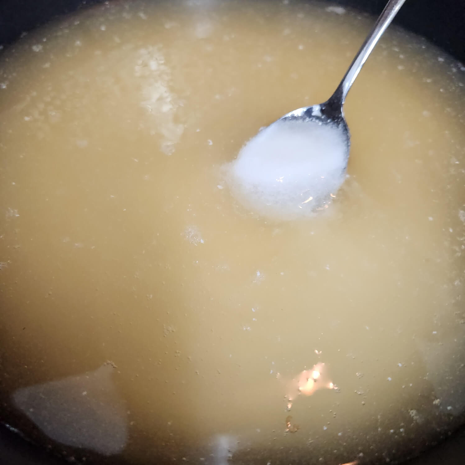 👉계속 숟가락이나 주걱으로 저어주시다가 물이 끓기 시작하면 중간불로 바꿔주시고 녹을 때까지 저어주세요
