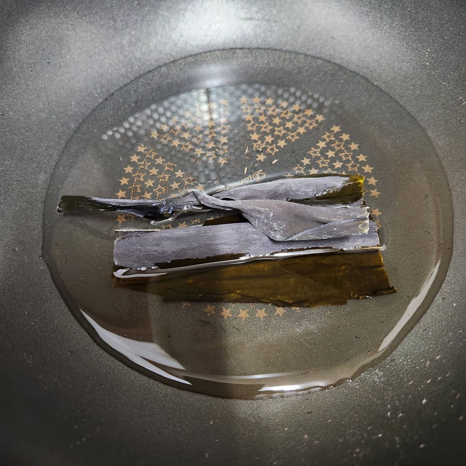 👉물이 끓기 시작하면 30초 ~ 1분뒤에 다시마를 건져 주세요.