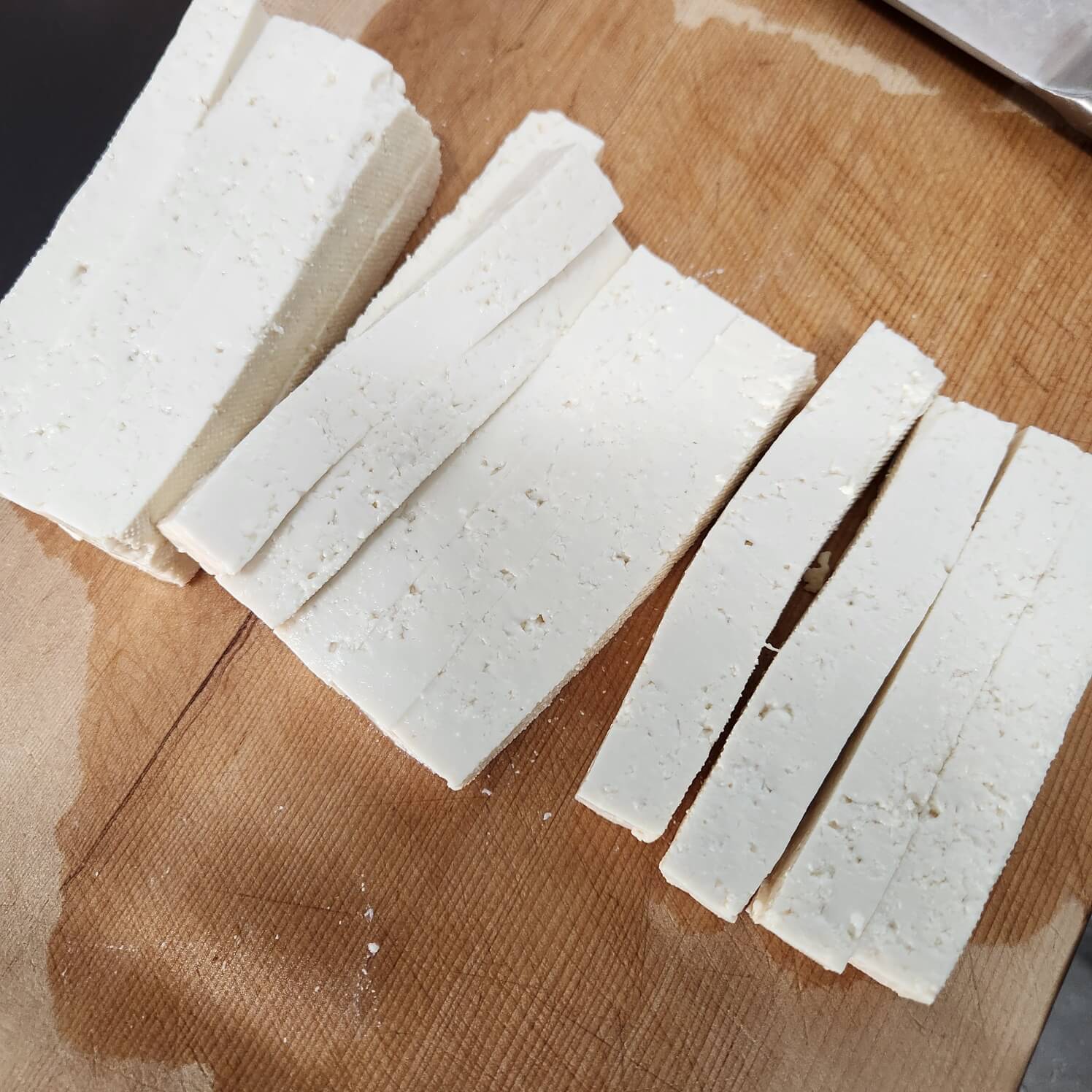 단무지모양처럼 두부를 썰어주세요. 1번 사진처럼 두부를 자르고 👉 그 단면을 누워서 2번째 사진처럼 잘라주면 됩니다.