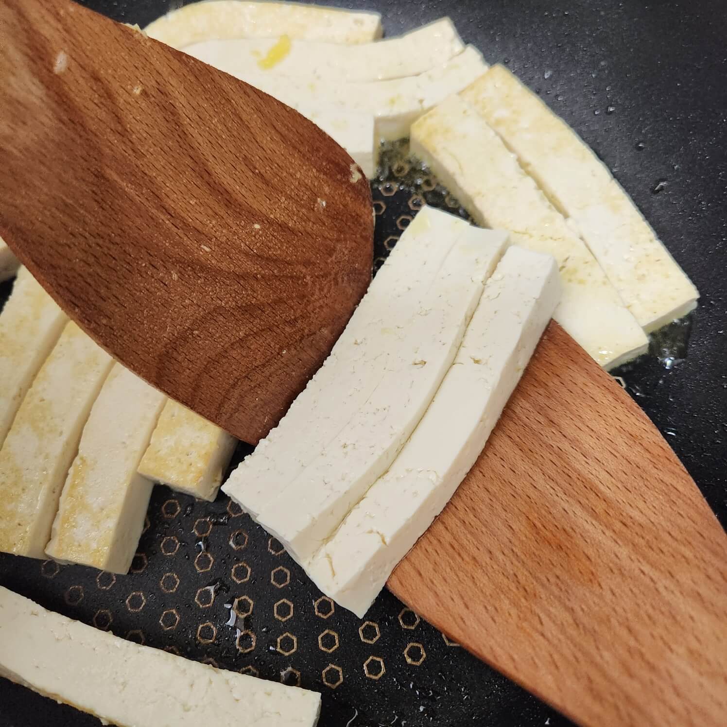 👉두부는 약한 불로 팬에 올리브유를 두르고 겉면이 노릇노릇해질 때까지 부쳐주면 됩니다.  부치고 나서 꼭 키친 타올로 기름제거 해주세요.