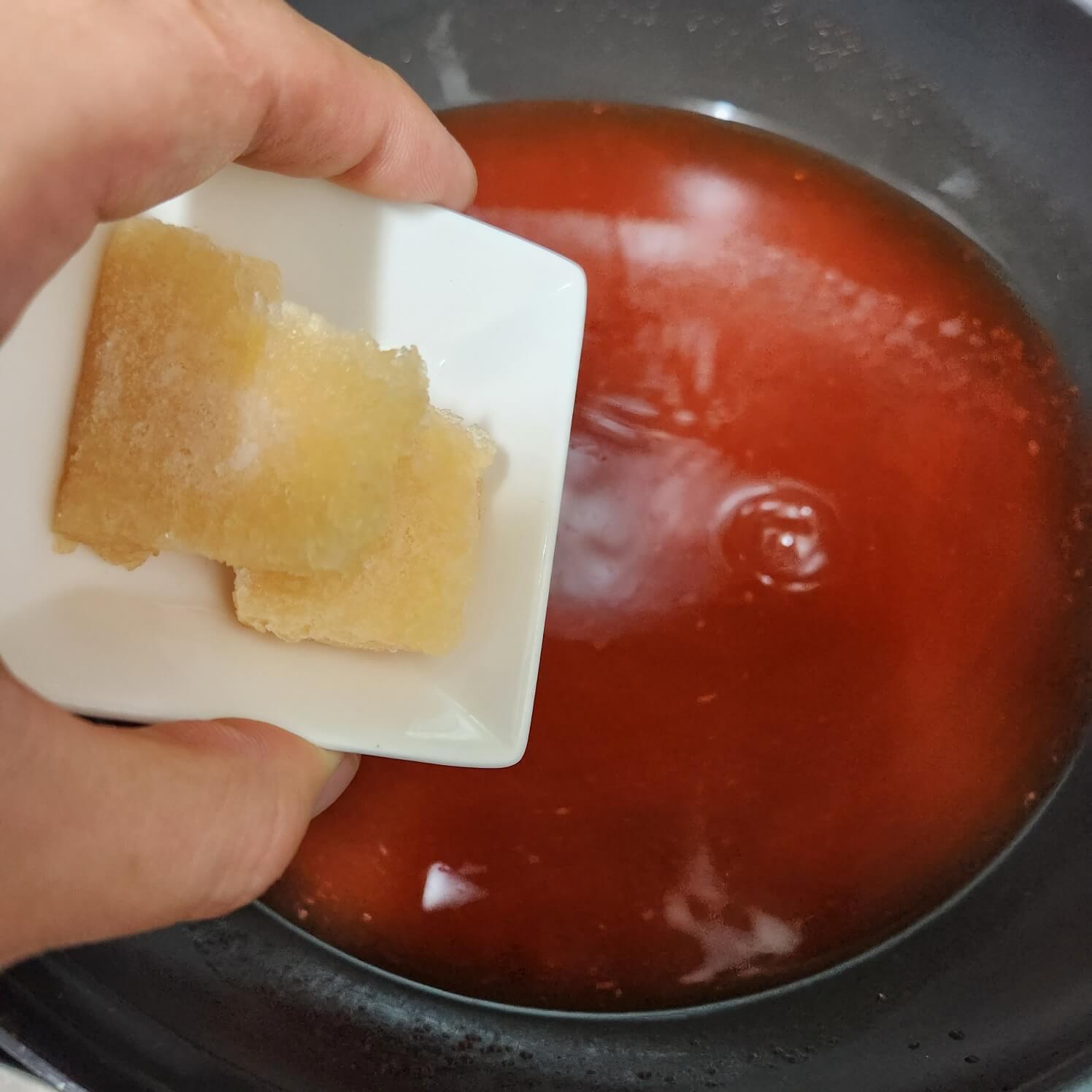 👉그리고 치킨스톡 1개를 넣어서 같이 끓여주시면 돼요.