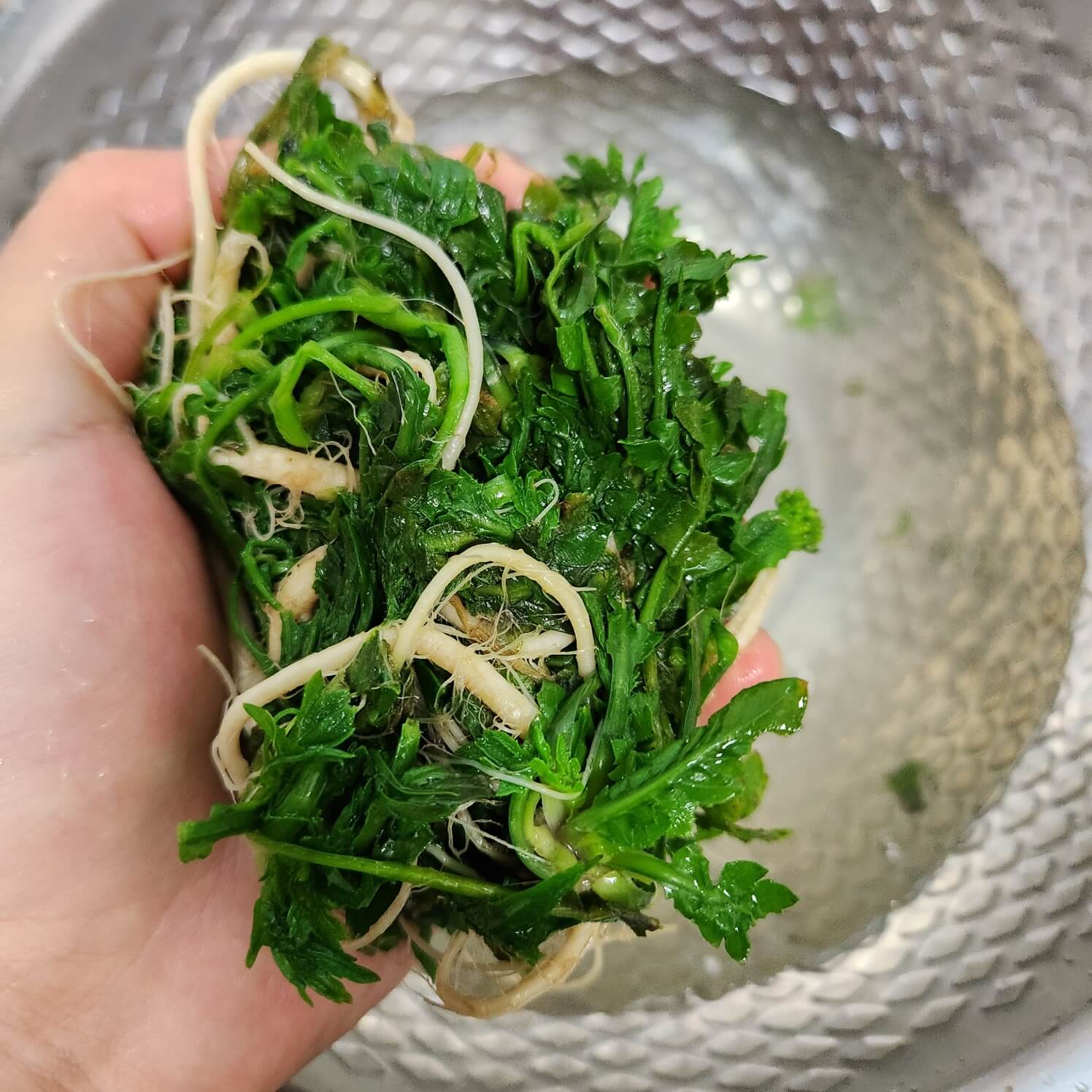 👉 냉이를 데칠 때 중요한 부분이 뿌리가 물에 들어가도록 해주는게 좋다. 이유는 잎보다는 뿌리가 굵기 때문에 늦게 데쳐지기 때문이다.