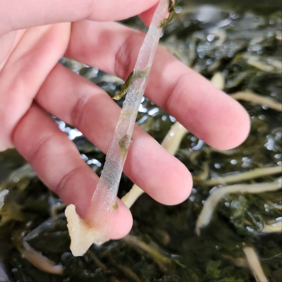 👉오른쪽 사진을 설명하지면 왼쪽은 시래기 투명 껍질을 제거 한 상태이고, 오른쪽은 시래기 투명한 껍질이 제거한 상태이다.