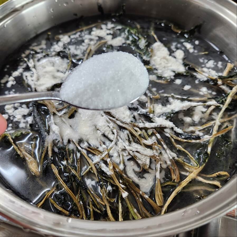 👉설탕을 약간 넣어주면 삼투압 작용으로 삶는 시간이 줄고 잡내도 없어집니다.