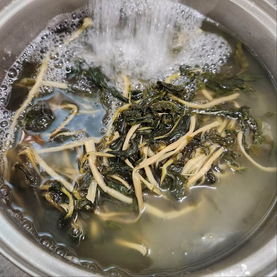👉밀가루를 넣으면 시래기 삶는 시간을 단축시킬 수 있고 더 연하고 부드럽게 삶을 수 있다.