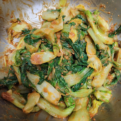 마지막으로 얼갈이를 한주먹씩 잡으시고 물을 있는 힘껏 짜주시면 됩니다.